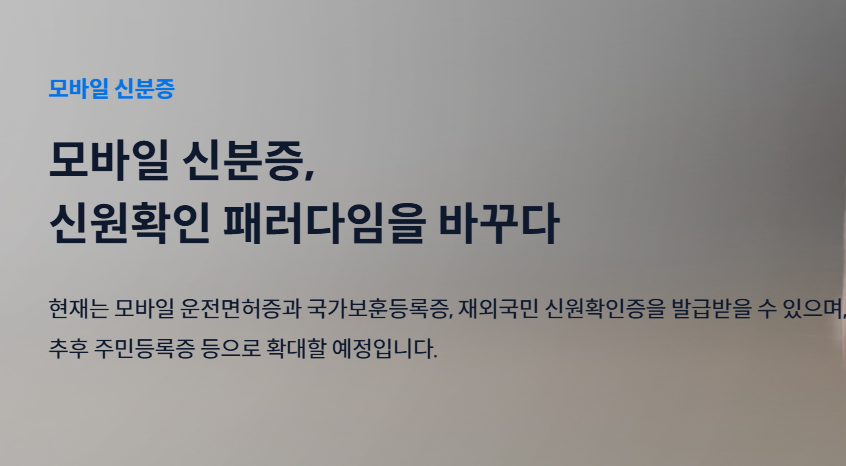 2025년 행정안전부 주요 추진 업무 중의 하나로 '모바일 주민등록증' 3월부터 전국확대가 실시됩니다.