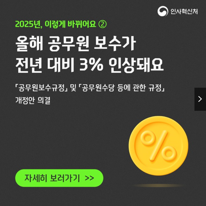 ■ 2025년 공무원 보수가 3% 인상되고, 저연차 실무 공무원에 대한 처우가 개선됩니다.