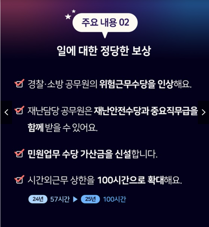 민원업무 수당 가산금을 신설과 일에 대한 정당한 보상 · 경찰·소방 공무원의 위험근무수당을 인상 등