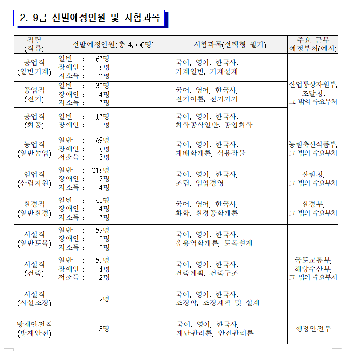 놓치시지 않도록 시험일정과 시험과목 더불어 9급공무원 초임보수 급여 인상 소식까지