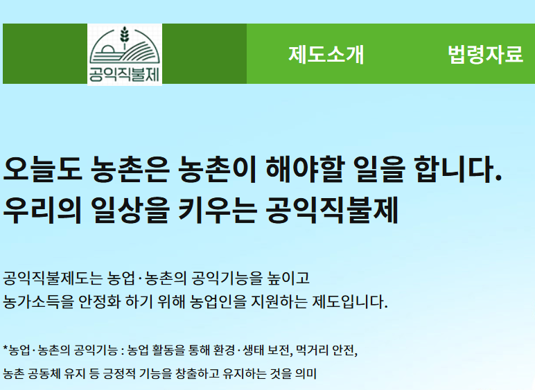 정부는 이러한 공익적 가치를 지속적으로 유지하고 발전시키기 위해 공익직불제를 시행하고 있습니다.